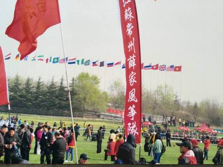 4月19日上午,常州新北区薛家风筝队参加了在山东潍坊举办的第11届世界风筝锦标赛,他们带来“三龙开泰”串式风筝在浮烟山国际风筝放飞场上一亮相就吸引了众多观赛者关注。