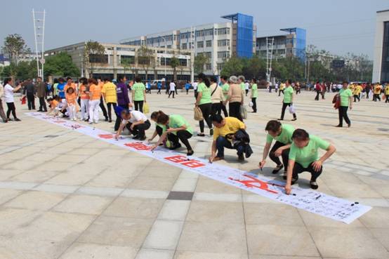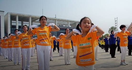 本次活动主要分两部分,一部分由来自8个社区的800名佳木斯操爱好者们进行《真正佳木斯快乐舞步第三套》的展示。这些佳木斯爱好者们来自各社区每晚活跃在各个晨晚练健身点的居民中,有老有少,有男有女,体现了佳木斯操的全民可参与性,也体现了居民们重视运动、参与运动的概念日益加强,响应了“我运动、我健康、我快乐”的口号。活动的另一部分是由三井街道文体站进行了文明健身的倡议,倡议居民朋友们积极维护广场秩序,做文明舞者,建和谐社区,参与本次活动的佳木斯爱好者们纷纷响应倡议在“文明健身乐享生活”的标语上进行了签名。