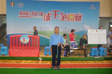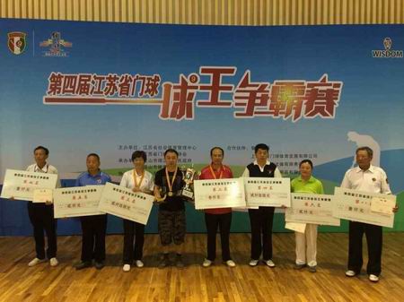 江苏省第四届门球球王争霸赛6月5-8日在昆山市锦溪镇降下帷幕,全省64名门球精英参加了角逐,第一阶段分16组,每组4人,第一名出线,第二阶段采取淘汰赛。