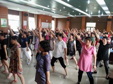 国标广场舞,是三月份由国家体育总局和文化部联合推出的、群众简单易学的、适合不同人群的健身操舞优秀作品。共由12套操舞组成,其中,传唱于大街小巷的《小苹果》、《最炫民族风》都榜上有名。培训班开班之前,区教育文体局设计了科学合理的培训菜单,让活跃在各个社区的广场舞团队进行了个性化的选择申报。本次培训聘请了武进区体育舞蹈协会的专职教练,根据学员的选择,进行《中国美》、《小苹果》、《中国味道》、《倍儿爽》四套操舞的教授。 全区的一百余名广场舞骨干参加了培训。培训结束后,来自邹区镇的骨干学员表示,国标广场舞推出后,有很高的群众认可度。
