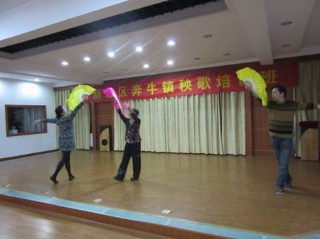 为了全面贯彻落实《江苏省全民健身条例》,进一步提高新北区奔牛镇全民健身运动水平,奔牛镇秧歌系列培训班于2015年11月6日晚上7:00在公园文体大楼三楼正式开班。奔牛镇历来非常重视群众体育运动的开展,而群众参与体育运动的热情也十分高涨,经过前期调查研究、召开协会负责人预备会议的基础上,本次系列培训正式开始了。这次的秧歌系列培训,准备花数月时间,专门聘请谢幼娟、任富英两位国家级的社会体育指导员,用每星期五、六两个晚上的时间进行培训。一个月教一套动作,将培训全国秧歌标准动作一至六套,自选动作《紫竹调》等三套。