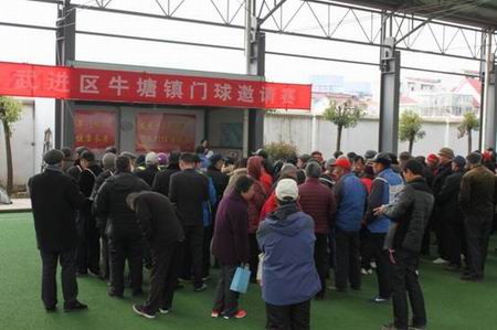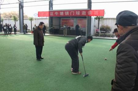 牛塘镇文广教体科科长到场致辞欢迎词,她说:“我镇每年举办一次门球邀请赛,旨在推动全民健身、以球会友、增进友谊、切磋球技”。她祝愿老年球友健康快乐,晚年幸福。18个球队分6组,每小组3个球队打循环赛。比赛在和谐的气氛中进行,欢呼声、喝彩声和门球的撞击声凑出一支完美的交响乐。18场比赛上午圆满结束,武进门球的第一炮胜利打响同,门球的高潮即将来到。