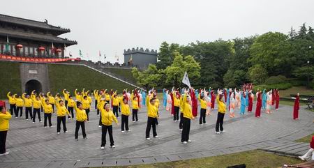 本次活动由扬州仇学梅、葛红梅和常州李志燕三位国家级社会 体育指导员共同主持。扬州市体育局张峰副局长等因感动于两个城市的健身气功爱好者冒雨开展交流活动,展演热情丝毫不受影响,他坚持不打伞,在雨中整整观摩两个小时并不时报以掌声与喝彩,让在场的体育健儿们倍受感动。两地的健身气功爱好者一致赞叹说这样的健身气功跨市交流活动非常好,一定要坚持举办下去。