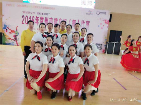 10月30日,由常州市体育局、市妇联主办的2016常州市健身操(舞)比赛圆满结束。 武进区横林镇健身队带来的健身操《舞动中国》造型新颖、舞姿整齐规范、动作热情奔放,得到了评委的认可,获得社会组二等奖。队员们倾力表演,尽情展示自信、活力,全场气氛时而欢快、时而激昂,高潮迭起,掌声不断,展现了横林健身队的精神风采和良好形象。
