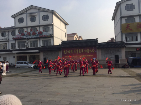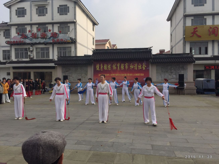 2015】国家体育总局等12个部门和江苏省人民政府办公厅关于加强老年体育工作的文件精神,推动老年人参与健身锻炼,2016年11月30日上午9点30,溧阳市老年人体育协会和埭头镇人民政府,在埭头镇皇母苑文化体育广场,联合举行了“2016江苏省老年人体育节溧阳分会场闭幕式暨老年人文体展示”活动。