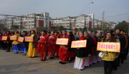 来自东城街道峨嵋社区、华胜社区、华兴社区、东城广场舞协会等健身点和当地的老百姓在领导讲话结束后,首先进行了老年人健步走活动。他(她)们精神抖擞,神采奕奕地走在欣欣向荣的社区里,感受美好生活带来的幸福。接着便是老年人体协和各健身点的精品展示,《欢乐中国年》、《前门情思大碗茶》、《长湖荡歌》、《船儿摇》等节目获得了老百姓阵阵掌声。