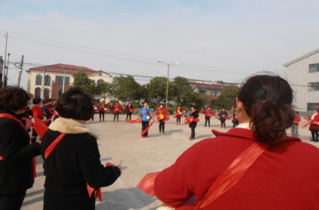 金坛区春江健身艺术协会在金城镇后阳村委篮球广场