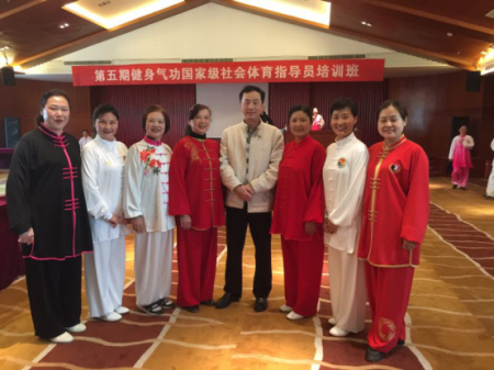 名学员参加培训班学习,学员都是全国各地健身气功骨干,由地方体育行政主管部门推选而来。培训班由国家体育总局健身气功管理中心主办,已经开办了四期,这次是第五期。国家体育总局健身气功管理中心常建平主任亲自到教学现场看望学员并做了重要讲话。