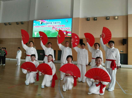 为认真贯彻落实习近平总书记关于全民健身工作的重要指示,推动老年人体育工作的健康发展,4月22日上午,天宁区老年体协在龙锦小学举办了江苏省老年人体育节、2017年常州市天宁区分会场开幕式暨太极拳(剑)展示交流活动。红梅街道天娇艺术团参加了此次活动。 天娇艺术团是活跃在老年体育事业的一支老年队伍。这次报名参加了集体项目《太极功夫扇》,3个个人项目:钱佩芳《飞刀迎凤》、张兰娣《木兰拂尘》、钱佩英《彩蝶纷飞(扇子)》。其中集体项目获得了团体项目优秀奖。 队长钱佩芳老师说,太极功夫扇是扇子的挥舞和太极的运动技巧灵活相结合,是武术动作与中国功夫和歌曲旋律巧妙相结合,要使这两个相结合做到完美,与队员们努力练习是分不开的,台上一分钟,台下十年功,虽然都到了老年人的行列,但队员们刻苦练习的精神,不输给年轻人。大家都有一颗爱体育、爱锻炼、爱一切美好事物的心。我们会带领更多的老年人参与全民健身行列。 (张志英)