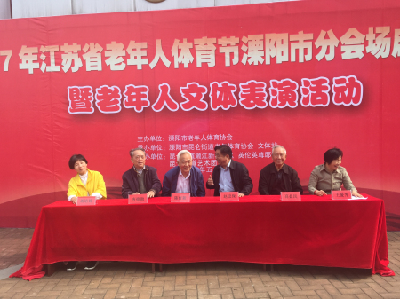 5月6日上午,由溧阳市老年人体协主办、江苏中关村科技园昆仑街道承办的2017年江苏省老年人体育节溧阳分会场启动仪式暨老年人文体表演活动,在昆仑街道濑江社区广场举行。