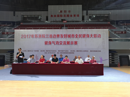日,苏浙皖三省边界友好城市体育健身大联动暨健身气功交流展示活动在溧阳市奥体国际花园体育馆举行。本次活动由溧阳市文广体局主办,溧阳市武术运动协会、健身气功协会承办,市老年体协、溧城镇文体站协办。来自浙江桐乡、长兴,安徽广德、郎溪,江苏宜兴、溧阳、金坛等