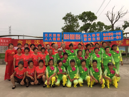 让我们团结、协作、自强、自信;刻苦锻炼:增强体质。同时希望沈渎南圩健身队的舞友们齐心协力、互勉共进,共创文明和谐的南圩村共同努力!