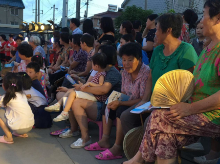 随着音乐的响起,村里男女老少自备板凳,纷纷涌到现场,舞台周围坐的满满当当。晚上六点半,演出正式开始,报幕员一登场,介绍了内容,顿时人群中不时爆发出热烈的掌声。