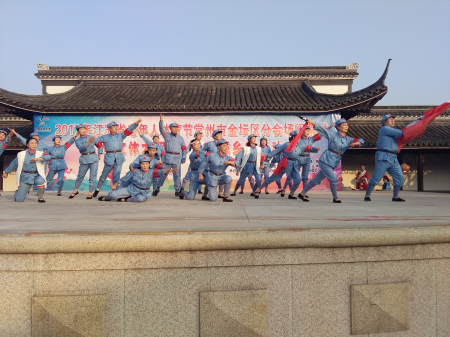 支演出团队参加了文体演出。热情奔放的广场舞《水月亮》、气势磅礴的情景剧《红色记忆》、英姿飒爽的《木兰剑》、柔中带刚的《