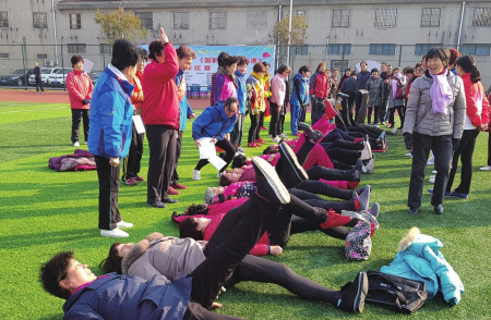 “体彩杯”《国家体育锻炼标准》达标赛,近日在平陵中路体育场举行。来自社会体育指导员协会、木兰拳协会、武术运动协会、民间体育健身协会、体育舞蹈协会、史式八卦掌研究总会、长跑协会等单项体育协会的400多名会员参加了比赛。
