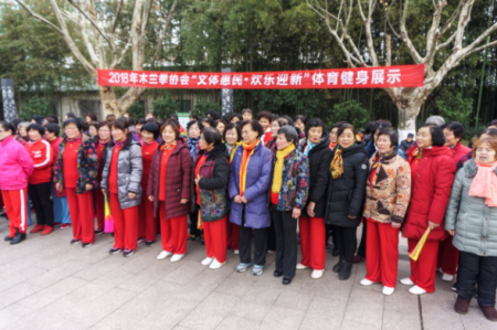 号,金坛区木兰拳协会在华罗庚公园北大门举办“迎新春·木兰文化展示” 活动,这次活动得到区文广局群体科大力支持,老年体协领导洪丽霞女士亲自参加这次活动,木兰拳领导对
