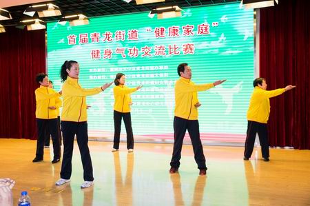 十九大指出要实施健康中国战略,人民健康是民族昌盛和国家富强的重要标志。为深入学习宣传贯彻党的十九大精神,把中华传统文化中的瑰宝“健身气功”引入青龙街道千家万户,弘扬中华优秀传统文华,提升居民的道德涵养与健康指数,家家争当“健康家庭”,同时在家庭成员中培育和践行社会主义核心价值观,培养担当民族复兴大任的时代新人,培养更多的能长期为居民的健康而默默奉献的优秀的健身气功社会体育指导员,让健身气功带给青龙街道世世代代的居民带来健康与和谐,首届青龙街道“健康家庭”健身气功交流比赛,3月中旬在青龙中心幼儿园紫云分园成功举办。