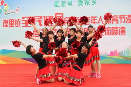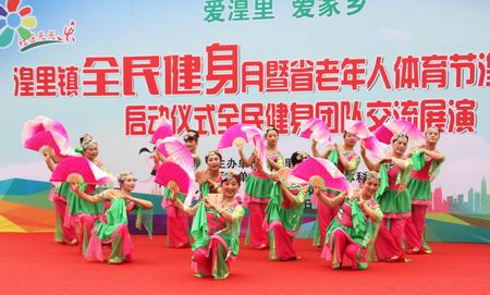 为认真贯彻实施《全民健身条例》,不断深化公共体育服务体系建设,积极倡导科学健身和文明健身,丰富群众业余文体生活,6月3日上午,伴随着湟里镇舞蹈协会表演的秧歌舞《吹开幸福花》热闹飞扬的开场表演,湟里镇2018年全民健身月暨江苏省老年人体育节湟里分会场启动仪式健身团队展演活动在镇健身广场拉开序幕,来自各村、社区的28支健身团队为在场的观众带来了精彩的秧歌、健身操、广场舞、太极拳、柔力球等健身项目,参与健身团队展演的群众达350多人,观众成千上万。最后春之绿健身队表演的秧歌舞《盛世欢歌》赢得了观众的阵阵喝彩,历时两个小时的健身舞、球、操展演,别开生面,高潮迭起,让居民群众感受全民健身的独特魅力,每个节目编排新颖,气氛热烈,精彩纷呈,展示了全镇群众自觉全民健身的风采,节目赢得了在场观众的热烈掌声。