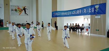 全民十五运,运动健康城。9月29日,由常州市人民政府主办,常州市老年人体育协会、天宁区老年人体育协会共同承办的常州市第十五届运动会老年人部太极拳(剑)比赛在常州奥体天宁全民健身中心举行。来自全市的6支代表队、80余名老年太极拳(剑)爱好者参加了本次比赛。 本次比赛设集体、个人42式或各式太极拳套路;集体、个人42式剑或各式器械套路四个竞赛项目。 最终钟楼区、金坛区、武进区、天宁区、溧阳市、新北区获得集体太极拳套路前六名;天宁区、钟楼区、金坛区、溧阳市获得集体太极剑(器械)套路前四名;天宁区陈亚静、新北区胡美兰、陈伟平、童水莲、金坛区彭小胖、钟楼区钟崔建鸣获得个人太极拳套路前六名;金坛区张小美、溧阳市谢建华、吴阿娣、钟楼区翟翠华、金坛区潘小海、新北区黄金枝获得个人太极剑(器械)套路前六名。大会为前三名颁发了金、银、铜牌以及为所有获奖单位、运动员颁发奖牌以及荣誉证书。本次比赛天宁区被评为体育道德风尚奖运动队,沈芬英等6人被评为体育道德风尚奖运动员称号,比赛取得圆满成功。