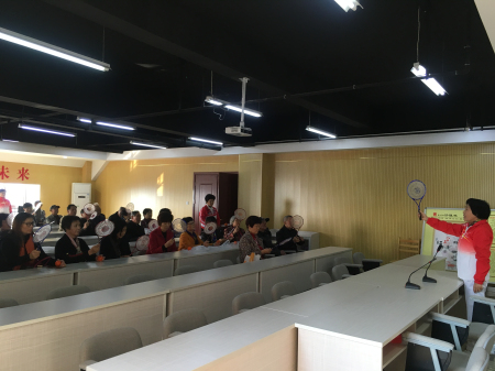 下午一点,培训班在昆仑街道综合文化服务中心三楼会议室如期举行。街道老龄办王爱芳主任作了热情而又简单的开班动员讲话。参加本次柔力球培训有昆仑街道行政、事业单位老干部共计48人,其中,男同志15名,女同志33名。