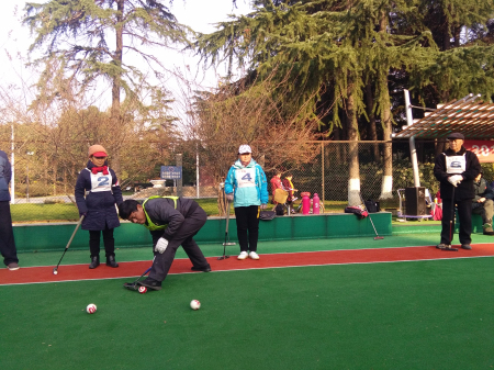 天气虽然寒冷,但是阻挡不了老年朋友对门球的热爱之情,他(她)们个个都精神抖擞,全神贯注,认真的打好每一杆球。经过一天的角逐,军休队获得了第一名;获得第三、四名的是:老干部一队、供销社一队。