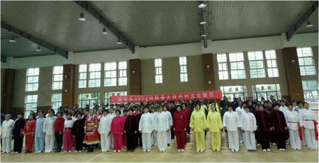 表演的节目有16 式太极拳、24式太极拳、32式太极拳、48式太极拳,杨式太极拳,24式太极剑、32式太极剑,杨式36式太极扇、中华黄河扇,中华乾隆养心拳,还有歌舞、独唱。整个展示过程,太极健儿们既展示了比武竞争拼搏的精神,又充满了以拳会友重在参与、我健身我快乐的愉悦心情。活动在太极健儿充满自信,又相互学习交流的欢笑中结束。(钱罗生)