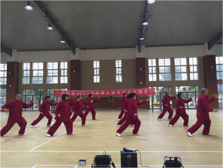 1月12日,金坛区太极拳协会在第三中学体育馆,举办迎新春全民健身太极文化系列展示活动,有社区乡镇21个健身点和老年大学的表演队,300多太极会员参加了演出活动。