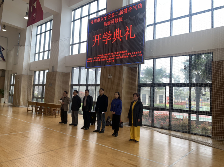 3月30日上午,由天宁区文化体育和旅游局主办,天宁区青龙街道、天宁区体育总会、天宁区老年人体育协会联合承办,由天宁区各街道、天宁区武术协会、常州市二十四中体育分校协办的天宁区第二届健身气功高级研修班,在市二十四中体育分校蓝球馆举行了开班典礼,参加的领导有市体育总会秘书长丁树俊、天宁区文化体育旅游局副局长蒋锤、天宁区老年人体育协会主席林凤根、天宁区文体旅游局文体科科长王体玲。开班典礼由天宁区老体协秘书长郑达齐主持,进行了三项议程,一是由主持人介绍开班情况,二是由天宁区文体旅游局副局长蒋锤作开班动员,三是由市体育总会秘书长丁树俊宣布开班。