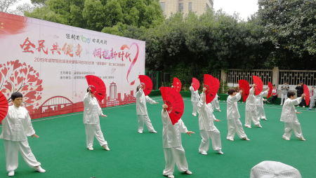 街道太极队、跆拳道高手们前来助阵,向大家展示了各自的健身成果,整齐的动作,有力的横踢,给大家留下了深刻印象。
