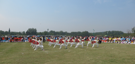 活动现场,来自全市的1600多名中老年健身爱好者在七彩曹山集体展示了排舞《舞动中国》《厉害了我的国》,吸引了周末到曹山旅游的大批游客驻足观看。随后,溧阳市各体育协会还为大家展示表演了欢乐腰鼓、老年柔力球、木兰拳、太极拳等10余个形式多样、契合主题的节目,赢得了现场观众的阵阵掌声。