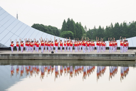 6月16日清晨五点刚过,常州天宁经济开发区紫荆公园标志性建筑摩天轮西侧的中央水岸,迎来了一批化着漂亮淡妆、身穿火红色“中国龙”亮丽运动T恤套装的健身气功达人,他们这么隆重齐刷刷地从各处整装赶来,一定是要参加什么重大活动吧?