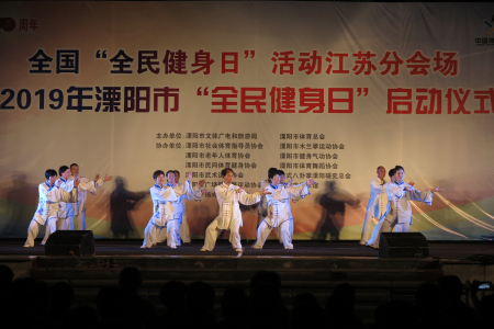 当晚,当地人民广场人山人海,溧阳市社会体育指导员协会、木兰拳运动协会、老年人体育协会、健身气功协会、民间体育健身协会、体育舞蹈协会、武术运动协会、史式八卦掌溧阳研究总会、广场健身舞运动协会、杨式太极拳协会等体育社会团体在启动仪式上表演了精彩的体育健身节目,让市民群众们大饱眼福。