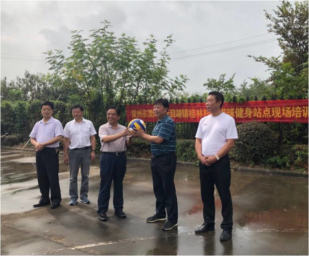 培训前,由赵忠保主席代表溧阳市老年体协向桂林村赠送气排球设备并强调:桂林村作为首个健身站点要做好模范作用,带动其他村居开展气排球运动,让广大老年参与者切身体会到这项运动的乐趣,快乐健身。