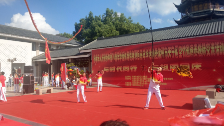 9月21日上午8点半,红梅公园文笔塔广场秋高气爽,风景秀丽,有常州市天宁区人民政府主办,常州市天宁区文化体育和旅游局、常州市天宁区天宁街道办事处、常州市天宁区老年人体育协会联合承办,常州市天宁区体育总会、常州市红梅公园管理处协办,苏州市华铃空竹厂赞助的江苏省老年人庆祝新中国70周年华诞体育健身项目嘉年华活动暨常州市天宁区抖空竹邀请赛在这里隆重举行。活动有常州市天宁区天宁街道文体科仲佳欢主持,有常州市天宁区老年人体育协会主席林凤根致欢迎词,有常州市老年人体育协会主席任小玉讲话,有常州市体育局调研员樊百城宣布开幕。
