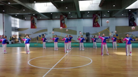 为庆祝祖国母亲70华诞,常州市老年体协在常州奥体钟楼区全民健身中心开展了“与时代同行与祖国同庆2019 年运动龙城大联赛常州市中老年“柔力球、可乐球、手杖操"项目展示交流活动。