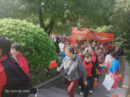 参加健步走的有领导干部、企事业单位职工、社区(村)居民500多人,由身着喜庆红色服饰的大妈腰鼓队领衔队伍在前,紧跟着是领导队伍,后面是“喜庆新中国70华诞 服务老年人健身健康”的主题横幅队伍,队伍好似一条长龙,从荆川东广场出发,沿公园走一圈至醉翁亭边广场到清潭路返回到起点结束。“健步走”走出了市民的健身热情,迈开双腿,科学健步走,走出了健康和幸福。(常州市老年体协)