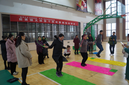 1月17日在文体中心三楼综合馆,武进前黄镇举办了“鱼米之乡 出彩前黄”幸福工程文体系列活动——文体骨干联欢暨趣味运动会。全镇20个村(社区)文体管理员参加了活动。