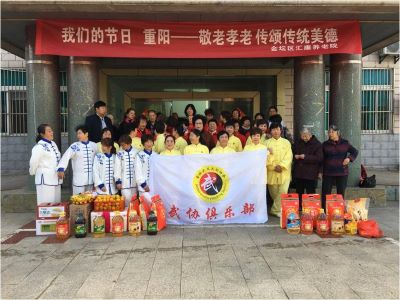 10月25日,九九重阳节送温暖,金坛区武术协会东城分会组织太极队员,前往汇康养老院慰问表演。会员们献爱心,带了慰问品。上午武术协会70多人,在敬老院陪伴老人聊天,在厨房包馄饨,帮着整理房间。