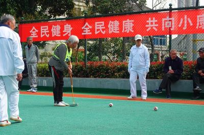 由武进区文体广电和旅游局、武进区老龄工作委员会办公室、武进区老年人体育协会主办,湖塘镇人民政府、武进区门球运动协会承办的2020年江苏省老年人体育节武进分会场“湖塘杯”农村门球比赛日前在湖塘镇何留社区门球场拉开帷幕。来自全区各分赛区的门球队伍经初赛选拔后,10支晋级队伍、150余名远动员参加了此次比赛,特别是何留小学代表队的参赛,展现了门球运动的“老少传承”,更为本次比赛增添了精彩。 湖塘镇、区文体广电和旅游局、区老龄委办公室、区老年人体育协会以及湖塘镇何留社区、淹城社区领导出席了开幕式。 比赛中,运动员们击球走位,弯腰对垒,老年选手精神抖擞,少年队员们活力无限,在老与少的“碰撞中”其乐融融。经过紧张激烈的比赛,湖塘镇何留代表队获得第一名,嘉泽镇代表队、牛塘镇代表队、高新区北区贺北代表队、湟里镇代表队、湖塘镇何留小学代表队分获第二至第六名。 本次比赛,是湖塘镇全民健身阳光工程的系列活动之一。今年以来在做好疫情防控工作的基础上,湖塘镇积极组织群众参与体育运动,居家健身、在线培训、线上赛事等等,为疫情期间的人们带来了积极向上的强大正能量。在五彩城区的建设过程中,全民健身必将助推全面小康,让湖塘居民用健康的体魄享受幸福的那抹“橙”色。 (镇综合文化站)