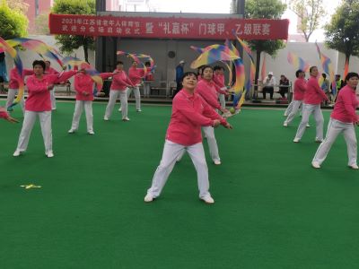 4月13日,2021年江苏省老年人体育节武进区分会场启动仪式暨“礼嘉杯”门球甲乙级联赛开幕式在武进博奥门球场如期举办。 启动仪式在荣获江苏省农民运动会金奖的礼嘉镇腰鼓队表演的《同唱祖国好》中拉开序幕,武进老年大学表演队展示了《没有共产党就没有新中国》《五星红旗》舞蹈,以优美舞姿和满腔热情,表达达了对党和祖国的真挚热爱。 根据《2021年武进区全民健身活动计划》安排,全国农村门球大联动2021年武进区“礼嘉杯”门球甲、乙级队联赛定于4月至11月举行。全区36支门球队,其中甲级队16支,乙级队20支,近400名运动员奋力拼搏,夺取晋级荣誉。 本次活动是疫情防控常态化形势下进行的一次联赛活动,不仅可以鼓励和带动更多居民参加到门球运动中来,还能让居民们通过竞赛,相互交流,广交朋友,增进友谊,提升健康良好的身体和心理素质,展现运动员良好的精神风貌,对全民健身运动起到积极的推动作用,为热烈庆贺中国共党建党一百周年画上浓墨重彩的一笔。(武进区老年体协)