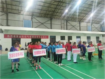 金城镇男女队、金城镇混合队;东城街道男女队、东城街道混合队;区门球协会气排球混合队;指前镇混合队等六支代表队参加了本次交流比赛。通过近四小时激烈而友好的比赛,分别产生了优秀奖和优胜奖。(王紫薇)