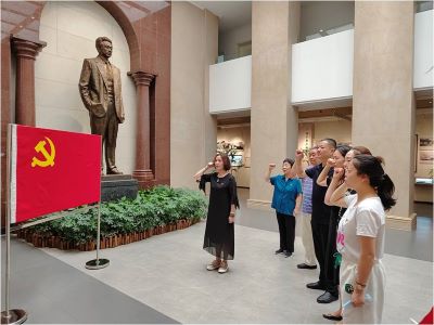 全体党员认真参观了各个展厅和陈列室,观看了大量的历史图片、资料、文物、影音片段。参观结束,全体党员来到鲜艳的党旗前,进行庄严的宣誓。