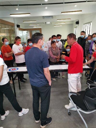 天宁区老年人体协常务副主席兼秘书长郑达齐作了开班动员;柔韵桌上冰壶球俱乐部李焕清等3位老师分别作了讲解和现场指导。