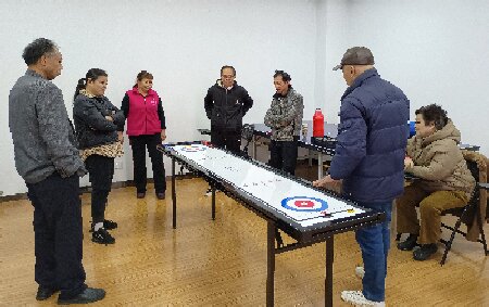 为推广桌上冰壶球项目运动,丰富居民群众生活,3月17日,由武进区湟里镇综合文化站主办的首期桌上冰壶球培训班在镇综合文化站四楼多功能室开班,培训特邀常州柔韵桌上冰壶俱乐部的李焕清老师现场授课。 “桌面这条线是H线,这条线是T线,比赛时红、蓝双方各8颗球, 每队各4名球员……”李焕清老师正绘声绘色地为学员们讲解桌上冰壶球的发源、规则、活动方法等理论知识,让各位学员对桌壶球有基本的了解。 理论讲解结束后,便开始进行实践训练,学员们轮流分组比赛,相互交流,对演练中存在的问题,李老师逐个指导,不仅对学员动作姿势、球的握法存在的问题进行纠正,还重点讲解了轻投、弧线、击打的技巧,加深了学员们对冰壶球培训内容的理解。随着一次次的投球,学员们也愈发熟练起来,大家热情高涨,纷纷表示:“这是一项十分具有趣味性,还能够体现出体育竞技精神的运动。” 桌上冰壶球不仅运动量适中、安全性高,而且具有占地少、趣味性强、不受条件限制等优势,是一个老少皆宜的新兴健身项目,湟里镇将以此次培训为契机,积极开展各项老年体育活动,形成全镇老年人参与体育运动的良好氛围,进一步丰富老年人的精神生活,推动湟里镇体育事业蓬勃发展。 (李建新)