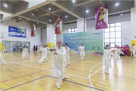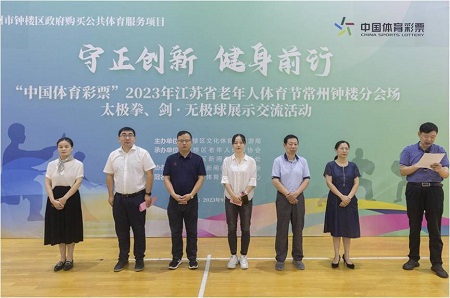 9月20日上午,江苏省老年人体育节常州钟楼分会场太极拳、剑·无极球展示交流活动在钟楼全民健身中心举行。本次交流活动由钟楼区文化体育和旅游局主办、钟楼区老年人体育协会和新闸街道承办。常州市老年人体育协会主席任小玉,常州市体育彩票管理中心主任吴霞,钟楼区文化体育和旅游局党组书记、副局长张伟,局长陈佳出席活动。开幕式由钟楼区老年人体育协会主席蒋建乔主持,新闸街道党工委副书记、街道办事处主任杨高飞致词,市老年体协主席作了重要讲话。 来自钟楼区各镇、街道的9支代表队近100名老年体育爱好者们分别进行了二十四式太极拳、二十八式综合太极剑、杨式四十二式太极拳、无极球坐式十二式等不同形式的表演。展演中,表演者身着统一服装,个个精神饱满、排列整齐,随着柔和的音乐起势、运拳、出步,行云流水,刚柔并济,把太极拳中正平稳、均匀柔和的特点展现得淋漓尽致。此次活动既是给老年朋友提供一个展示太极技术和精神风貌的交流平台,亦是为了吸引更多老年人投身全民健身活动,让更多老年人在健身活动中感受到生活的美好和自身的价值。 新闸街道作为此次交流活动的承办单位,近年来,在钟楼区文体旅局的领导下,市、区老年体协的指导下,紧跟新时代、适应新形势、落实新要求,在健全组织协调功能上下功夫,在完善老年人体育活动场地设施上谋布局,通过举办老年人喜闻乐见、便于参与的健身项目,广泛普及太极拳、广场舞、健步走、柔力球、气排球等老年特色项目,倡导老年人养成积极的生活态度,让“全民健身 、全民健康 、全民共享"的理念深入人心。(钟楼区老年体协)