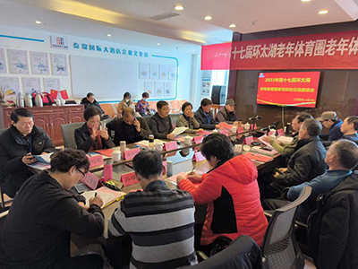 9、12月20-22日,圆满承办了第十七届环太湖老年体育圈研讨及交流活动,苏、浙、皖八城市老年人体协主席、秘书长及50多位县(区)老年人体协主席、秘书长近120人参加研讨会及桌上冰壶球交流活动。