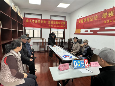 钟楼区永红街道清潭五社区举行“桌上冰壶闹元宵 竞技欢悦队友情”活动