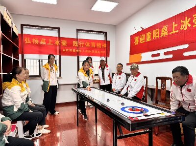 钟楼区永红街道携手天宁区雕庄街道举行重阳桌上冰壶球联谊会