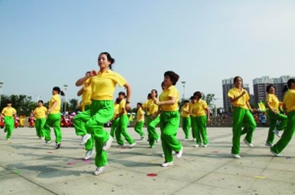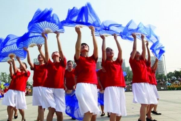 随着城市建设的发展,城市建设的日新月异,城市广场的建立为市民提供了休闲娱乐的公共空间,为广大人民群众开展健康、向上的文化活动创造了条件。新北区在各镇、街道建好一个1000平方米以上的文体活动广场的基础上,推进行政村、社区文体广场建设,广场文化丰富多彩。欢乐圈操、木兰扇、排舞、健身秧歌、彩带秧歌舞等特色团队,就是在这种广场文化基础上组织和培养起来的,他们展现的是一种健康健美、时尚欢快的现代元素。