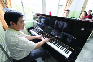 ▲ 老有所教 成立区老年大学,开办交谊舞、电脑、书法、国画和太极拳等15个专业、20个班,为老年人创造学习条件。图为老年大学教师上声乐课。